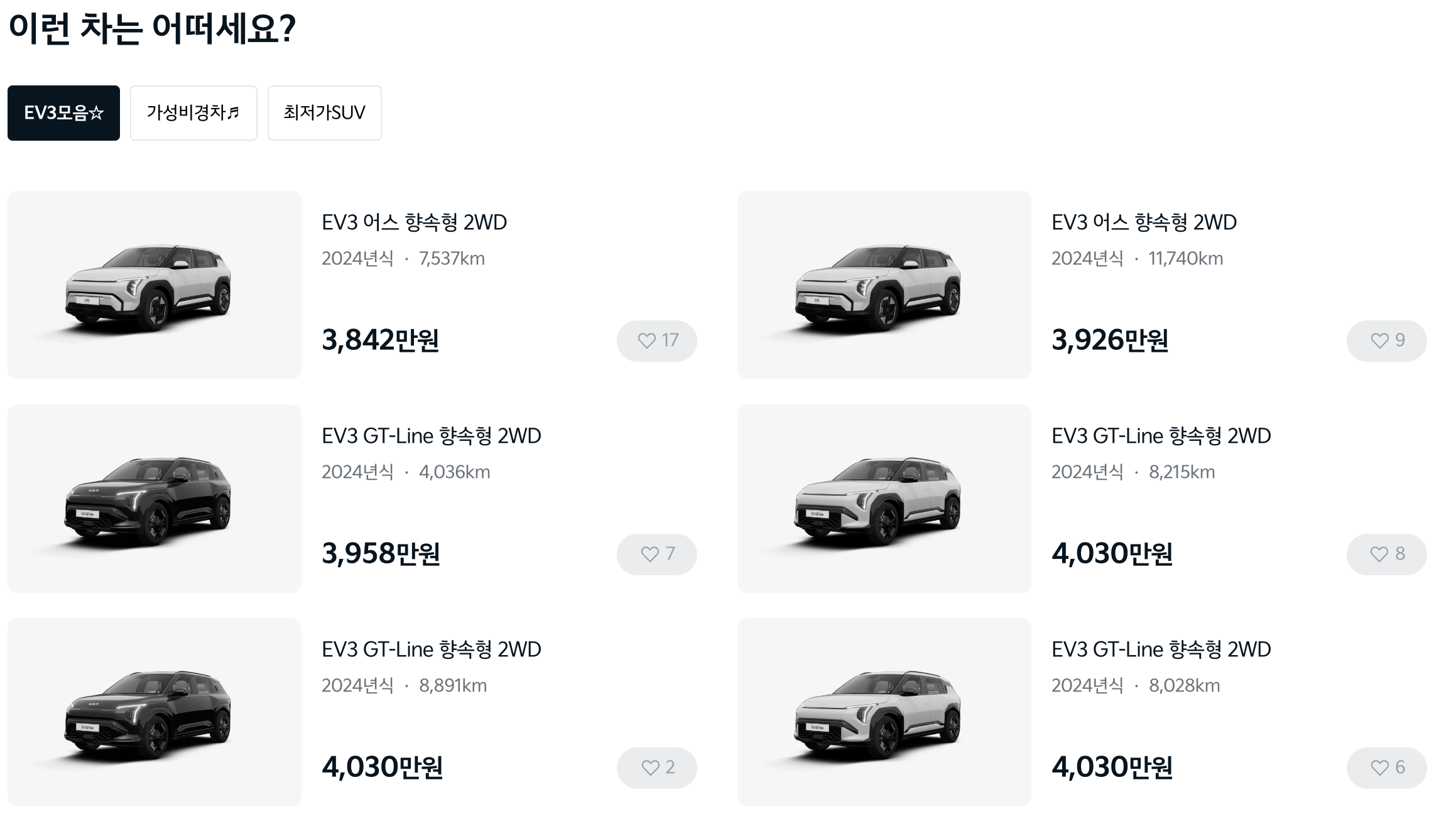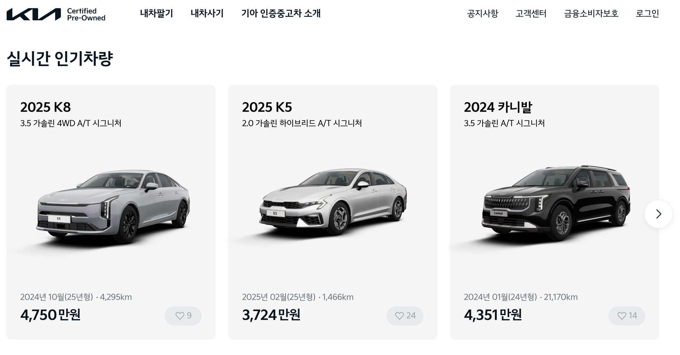 기아 인증 중고차 사이트에 올라오는 차 수가 많지는 않다 보니,